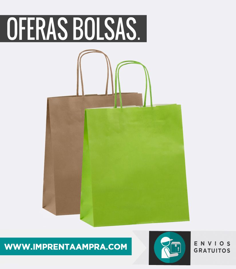 Ofertas pack de bolsas de papel personalizadas para comercios, Buscas regalar a tus clientes junto con la compras que realicen, algo personalizado, en imprentaampra.com te ofrecemos nuestros packs de bolsas de papel kraft asa plana y asa retorcida personalizadas en serigrafía por las dos caras con tu logotipo de empresa. bolsas de colores y color kraft, pack de bolsas varios tamaños, colores y pecios económicos. MARCAJE A 2 CARAS / BOCETOS BOLSAS / PORTES INCLUIDOS.
